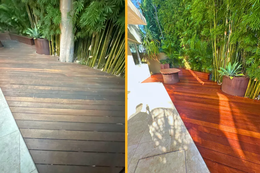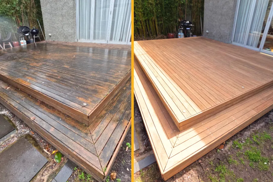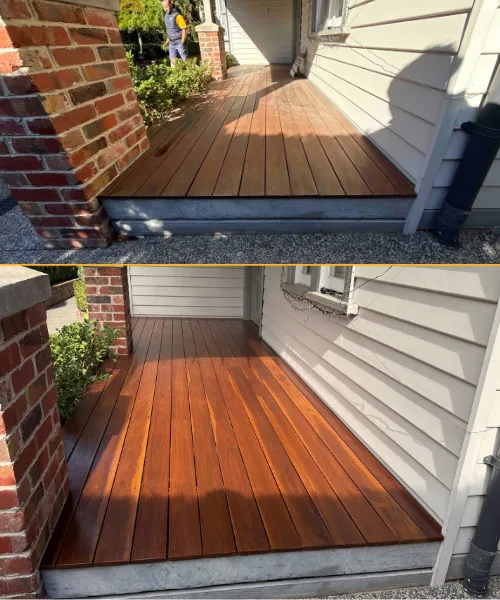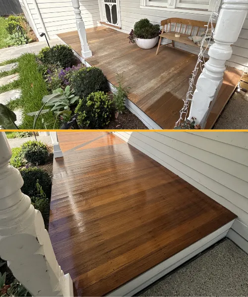 Absolutely. If your deck needs carpentry repairs, we’ll flag it during the inspection and can replace or reinforce boards as part of the restoration.